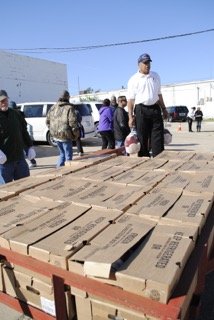 The 370 bags were loaded with everything needed to make a Thanksgiving meal and waiting to be paired up with a turkey.